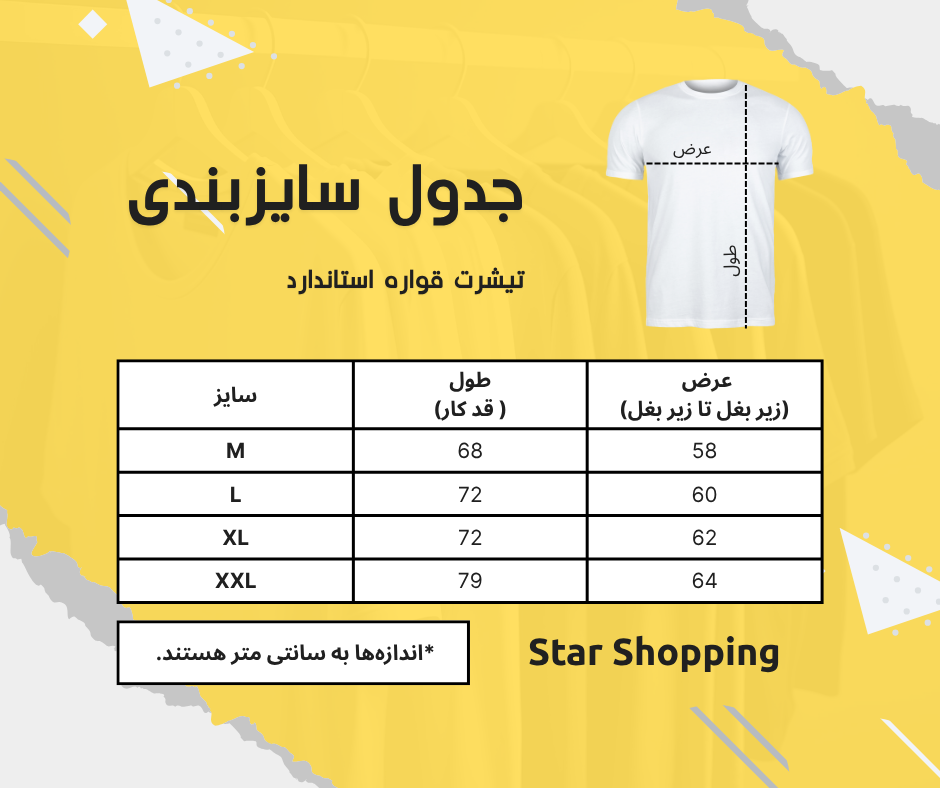 قواره استاندارد: برخلاف تیشرتهای بسیار تنگ (رژیم) یا خیلی گشاد (اورسایز)، تیشرت بیسیک استاندارد قوارهای متعادل دارد که برای اکثر افراد مناسب است.