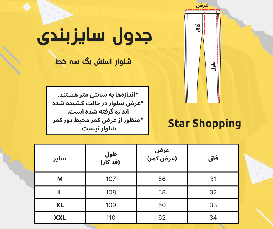 طراحی دوخت کنار شلوار با الگو از برند آدیداس است و دارای نوار سه خط سفید برجسته میباشد که جلوه ای خاص و متمایز به این شلوار داده است.