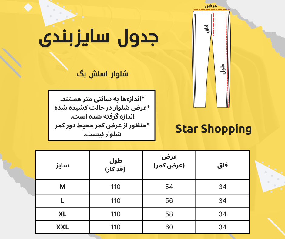 یک جیب مستطیلی در پشت شلوار (سمت راست) قرار دارد.