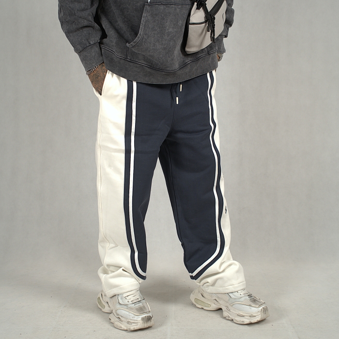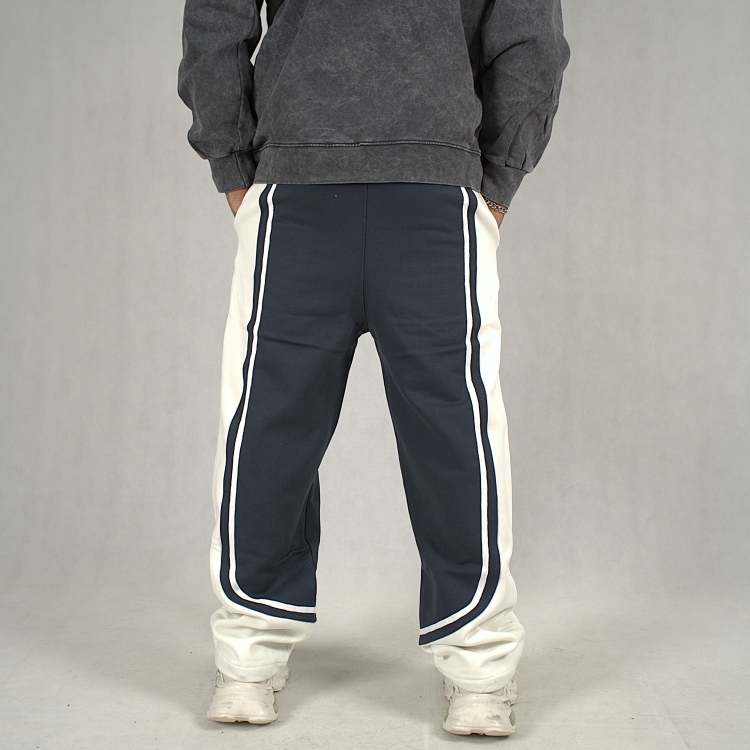 مدل (استایل): شلوار اسلش (Sweatpants/Track Pants) با ظاهری گشاد (Baggy/Relaxed Fit) که در حال حاضر ترند (مد) هستند.