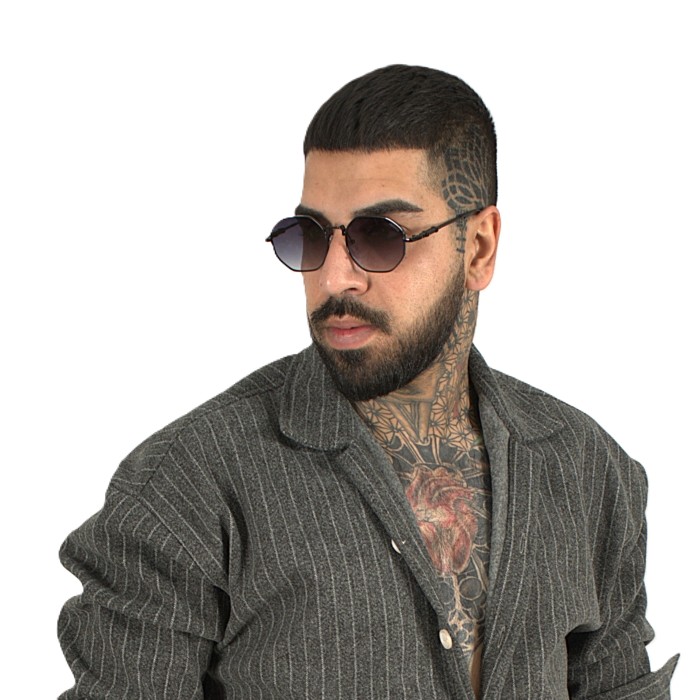 جنس و رنگ لنز: لنزها آفتابی هستند با رنگ دودی (طیف خاکستری تیره). رنگ لنز از بالا به پایین سایهروشن (Gradient) شده است؛ یعنی در بالا تیرهتر و در پایین روشنتر است.