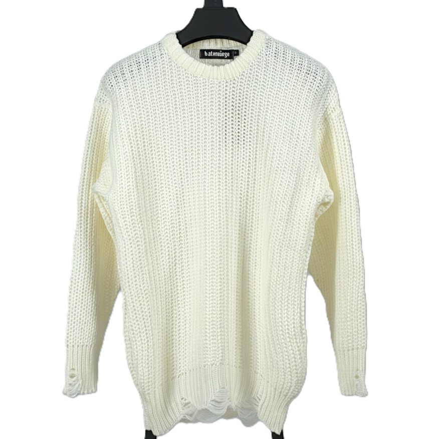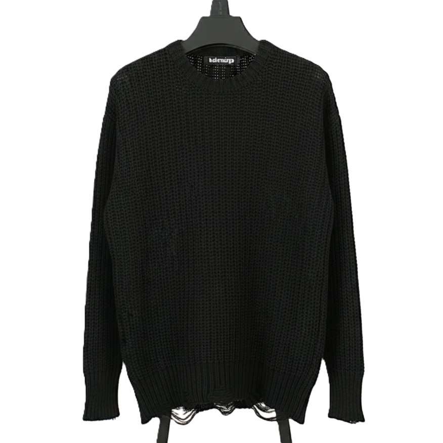 جزئیات خاص: لبه پایین لباس (کمر) و سرآستینها دارای پارگی،ریشریش شدگی عمدی هستند. این ویژگی نشاندهنده سبک دارک یا گرانج (Dark/Grunge Style) است.