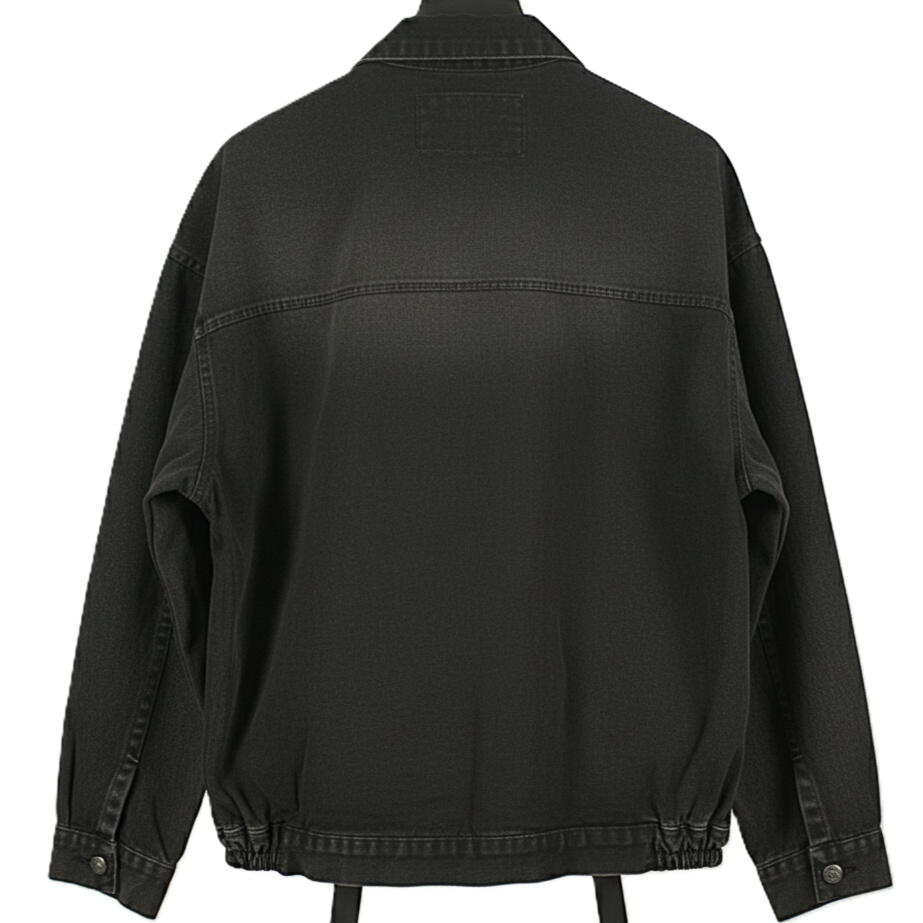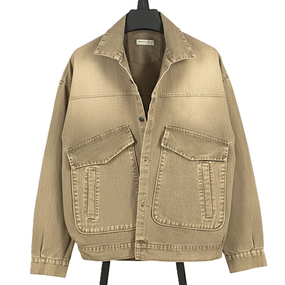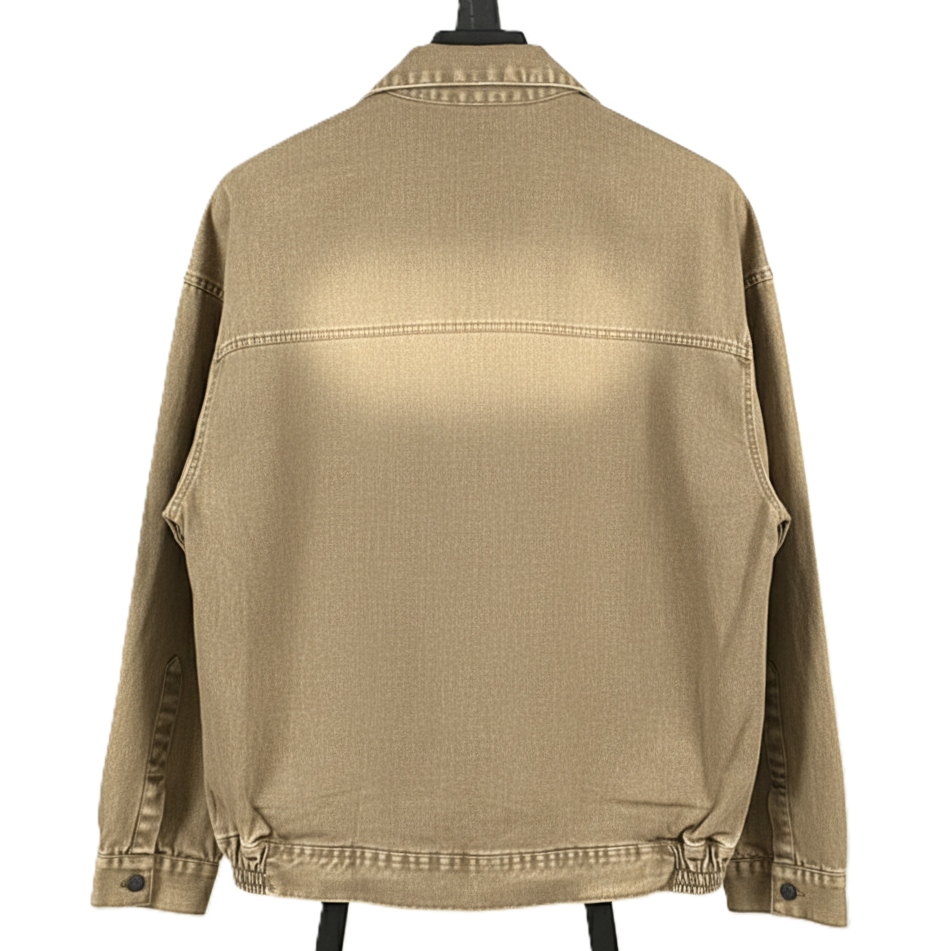 مدل کت جین/ترکر (Denim/Trucker Jacket) ، برش راحت (Relaxed Fit). این برش امکان پوشیدن لباس‌های ضخیم‌تر در زیر کت را فراهم می‌کند.