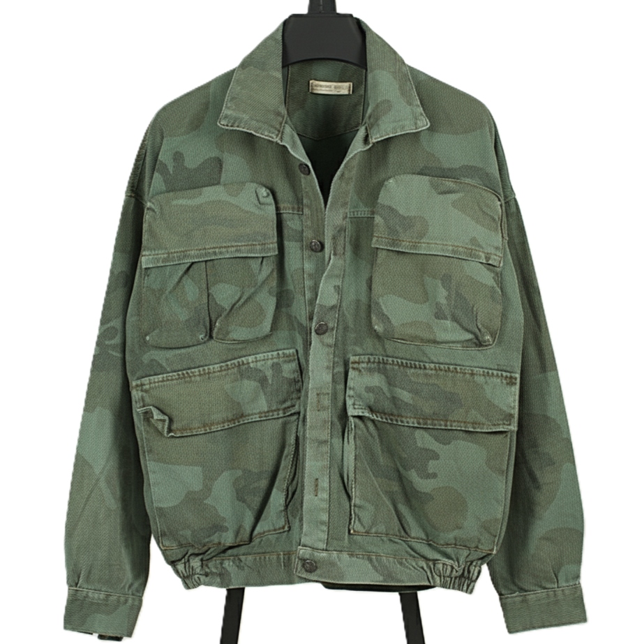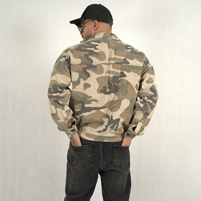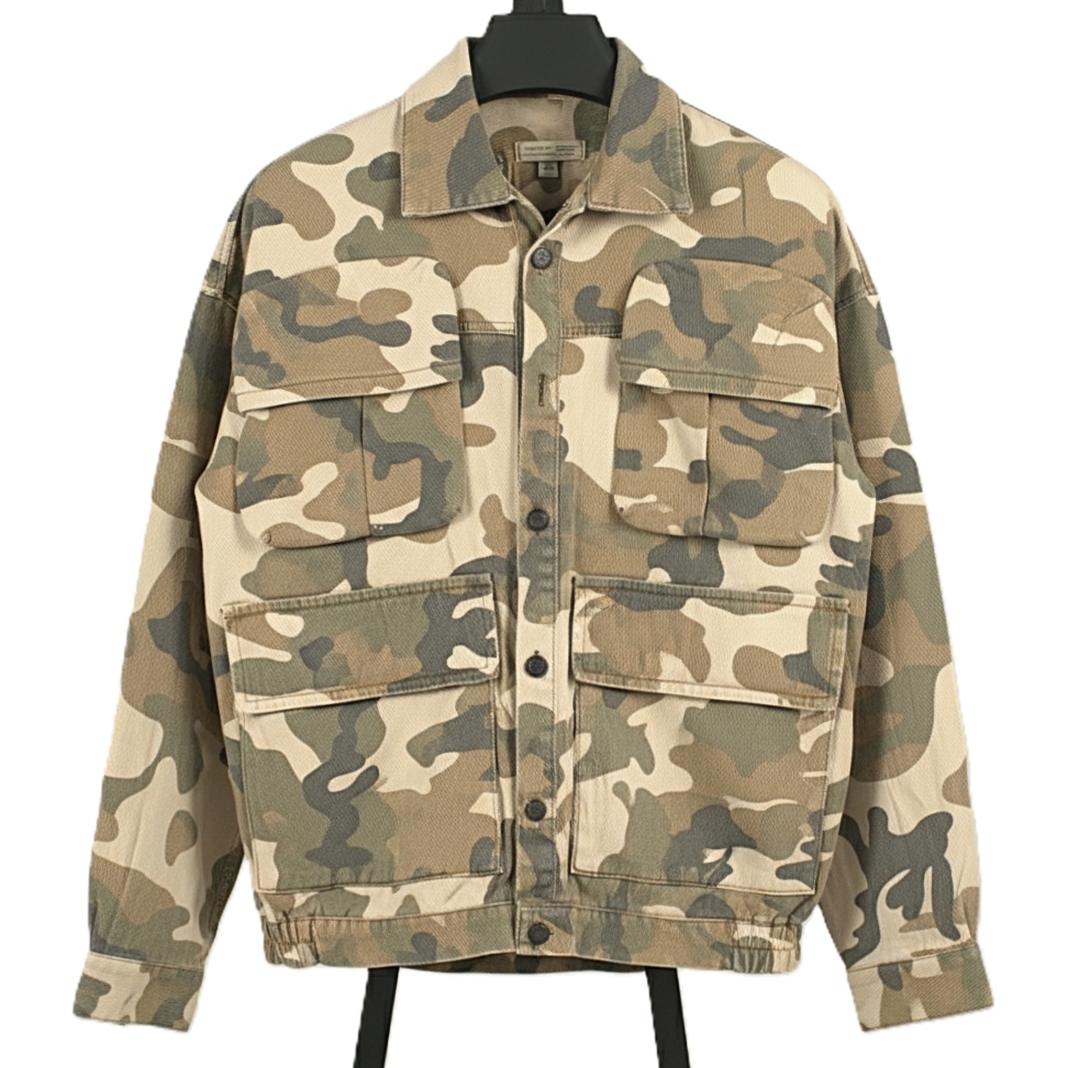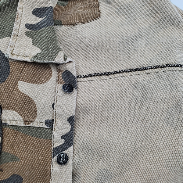 جیبها: چهار جیب پاکتی بزرگ و برجسته روی سینه و پایین کت (دو جیب روی سینه و دو جیب در پایین). این جیبها مشخصه اصلی کتهای کارگو/نظامی هستند و به کاربردی بودن کت میافزایند.