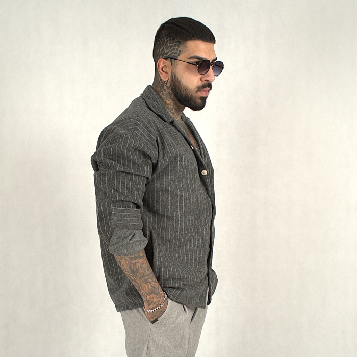 مدل اصلی اورشرت (Overshirt) یا کت کژوال با برش آزاد (به دلیل اینکه ظاهر آن نه کاملاً رسمی است و نه مانند یک پیراهن ساده)