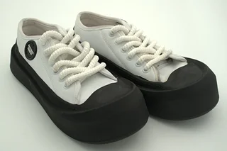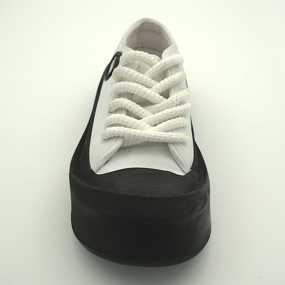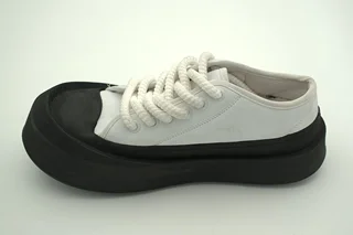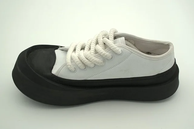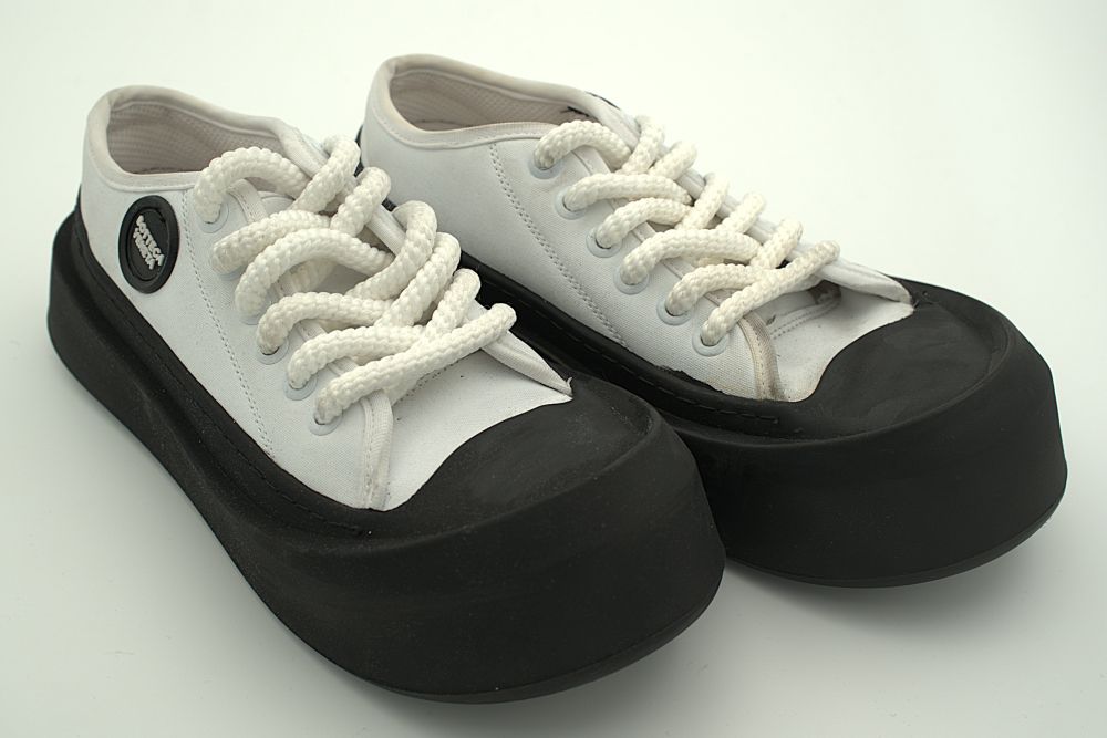بندهای ضخیم، نوک پنجهی کلاهی مشکی/ لژ و نوک پنجهی بسیار حجیم و کنتراست شدید رنگی (سفید و مشکی)